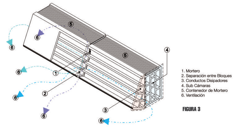 Il processo di fabbricazione di Bt Bloque Termodisipador è lo stesso di quello dei laterizi utilizzati per la realizzazione di involucri architettonici e facciate ma con una innovazione: la sezione trasversale dell’elemento laterizio è costituita da un rettangolo e un triangolo scaleno irregolare a cui è demandato il compito di proteggere parzialmente il mattone dalla radiazione solare.