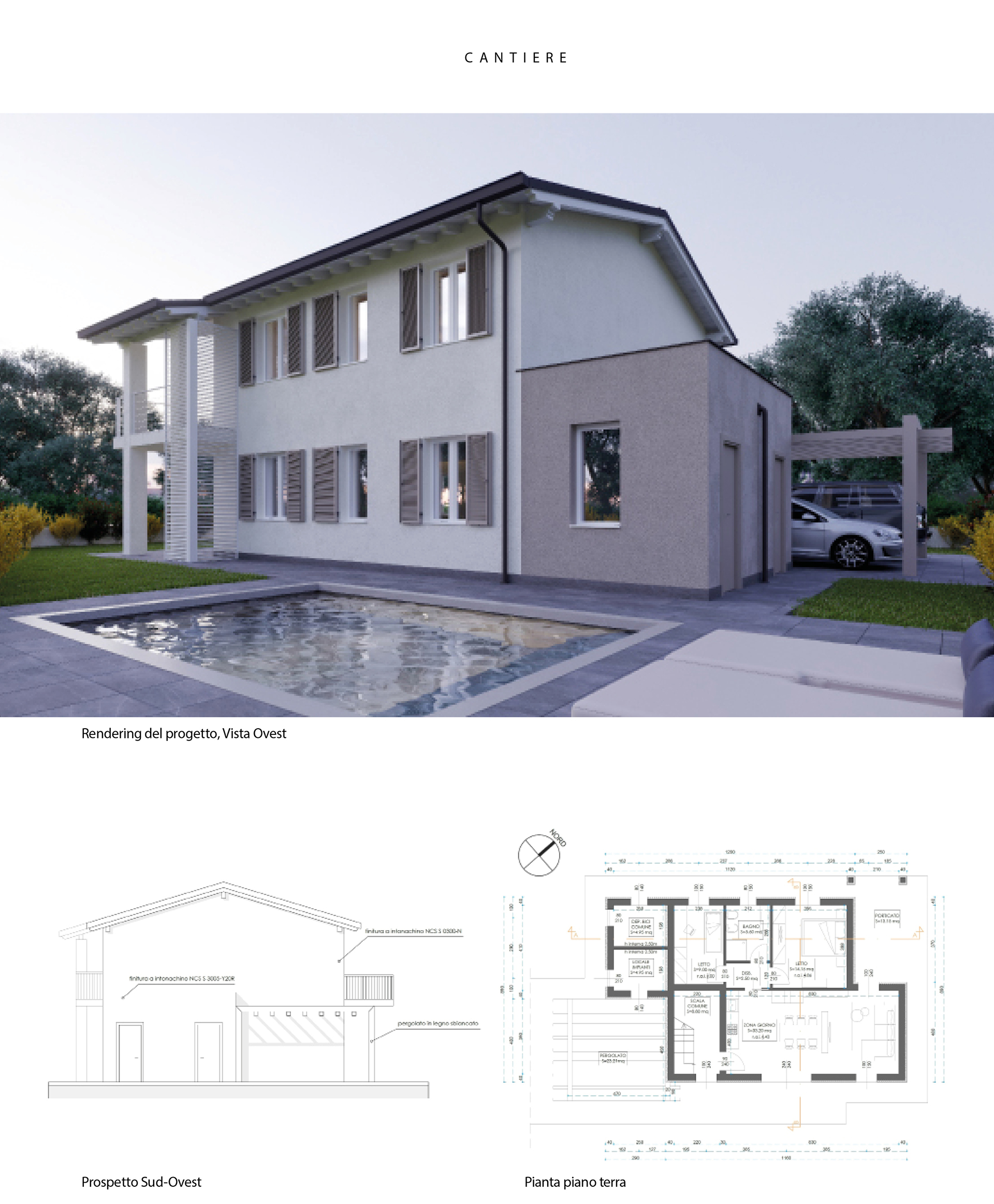 Inoltre lo sfasamento essendo superiore alle 12 ore garantisce ottime prestazioni dal punto di vista del comfort estivo grazie all’inerzia termica. La dotazione tecnologica ed impiantistica ha contributo ad elevare le prestazioni energetiche dell’intero sistema costruttivo. L’edificio è stato dotato di una pompa di calore con unità esterna motocondensante e modulo idronico interno abbinato ad una ventilazione meccanica controllata. Un impianto fotovoltaico da 6kW e due pannelli solari completano la dotazione impiantistica. Il risultato finale è un edificio classificato in classe A4 con un valore di Epgl,nren inferiore ai 40,00 kWh/mqanno ovvero ad altissima efficienza energetica.