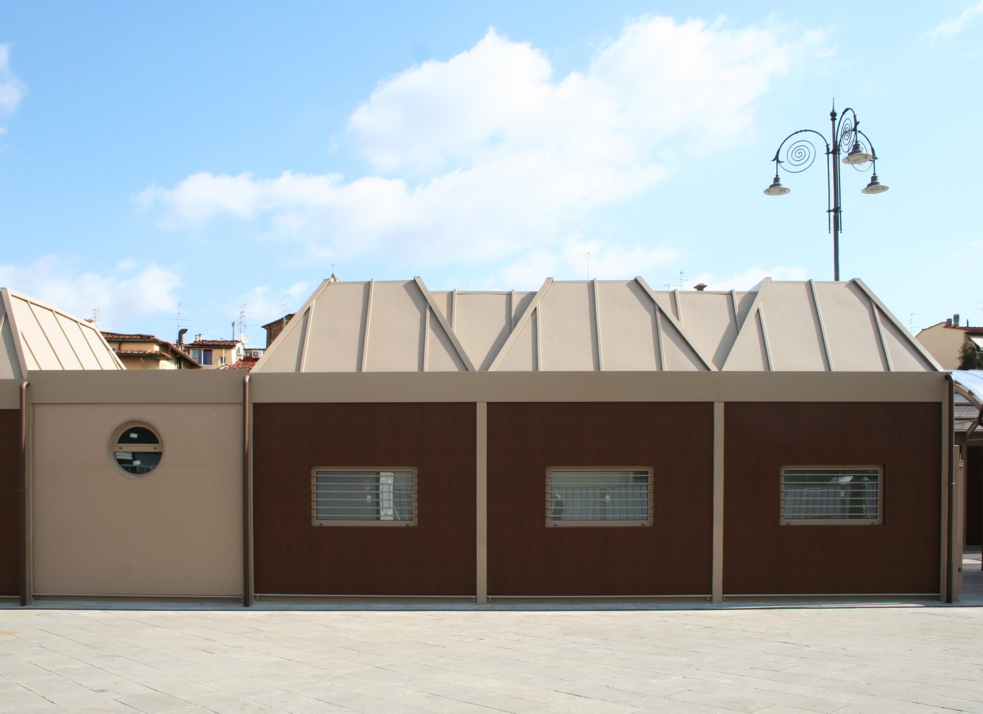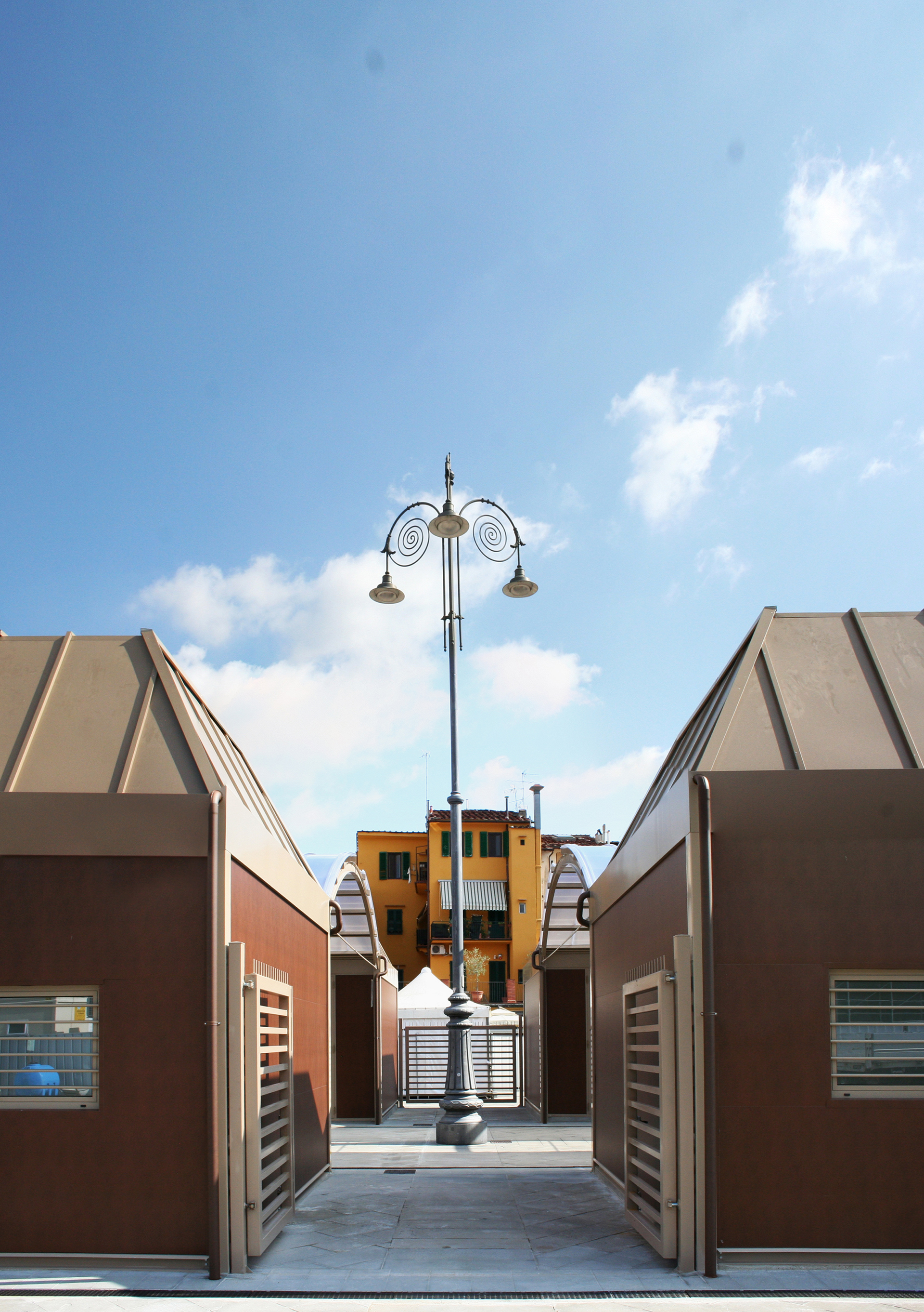 Arch. Paolo Di Nardo | Direttore dei lavori. Opera: Strutture per il Mercato Antiquario in Piazza Annigoni, Firenze: 24 box vendita e 4 box per servizi collettivi