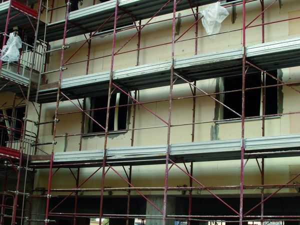 Per i circa 25.000 metri quadrati di facciate è stata adottata la tecnica dell’isolamento a cappotto applicato direttamente alle murature in laterizio che compongono le pareti perimetrali.