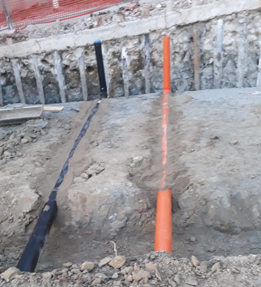 - Prima platea con pareti perimetrali a sostegno strada e attacco marciapiede 30 cm.