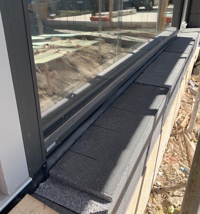 Particolare attenzione è stata prestata al posizionamento del serramento e del cassonetto, entrambi avvolti da strato isolante e doppie sigillature per la tenuta all’aria. I serramenti sono in legno/alluminio con triplo vetro basso emissivo e sono stati posati senza falso telaio, opportunamente nastrati e in continuità con l’isolante perimetrale. Gli infissi sono certificati Passivhaus.