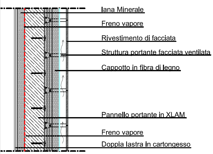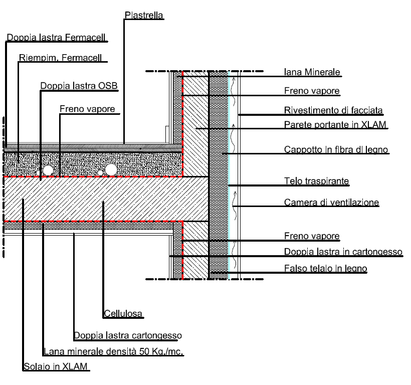 Al fine di costruire edifici energeticamente efficienti e sostenibili, la struttura è stata interamente realizzata in legno Xlam, un sistema costruttivo prefabbricato, studiato e utilizzato da diversi anni dallo studio Guzzo, ricoperto da un sistema a cappotto termico in fibra di legno.
