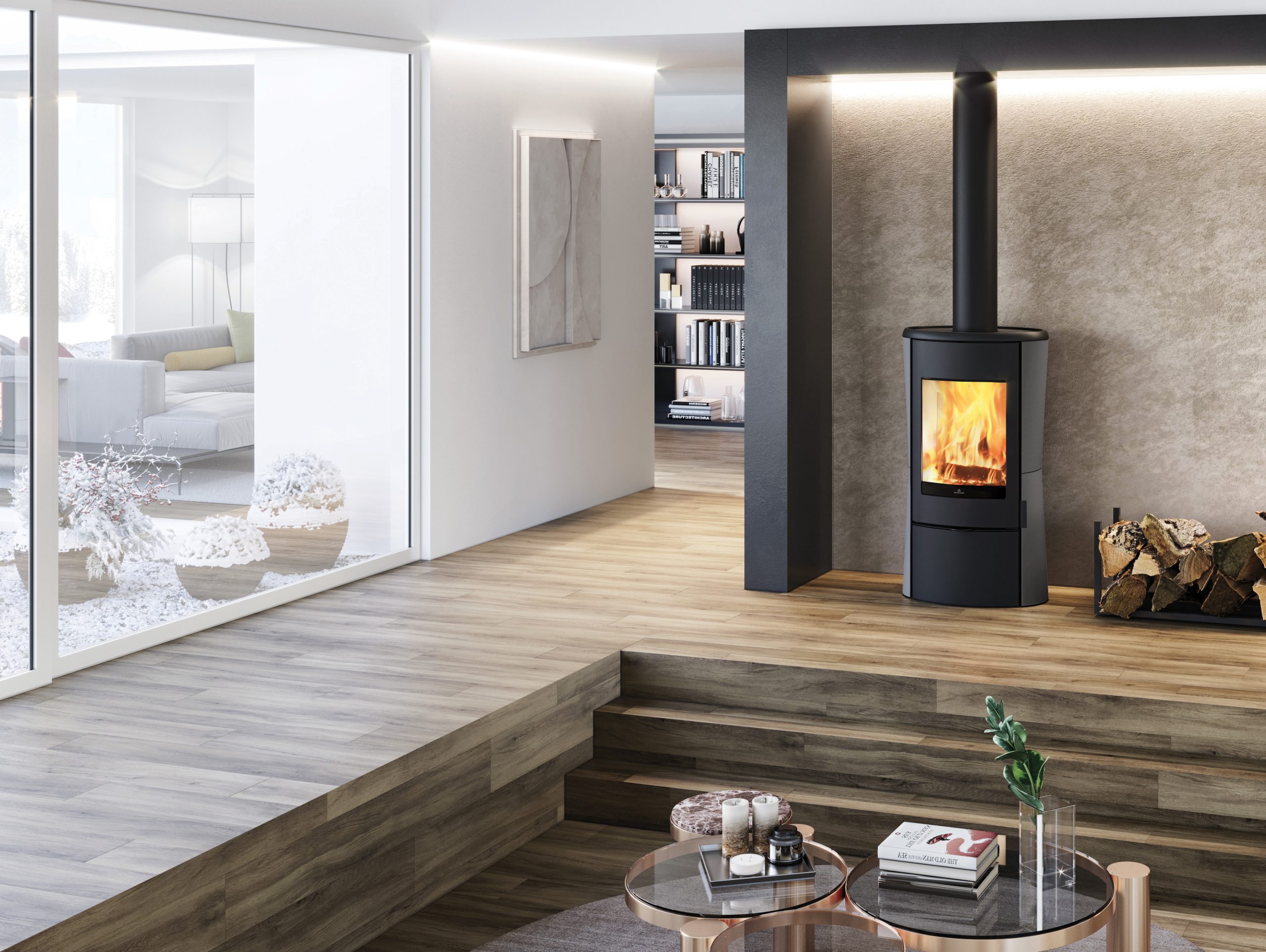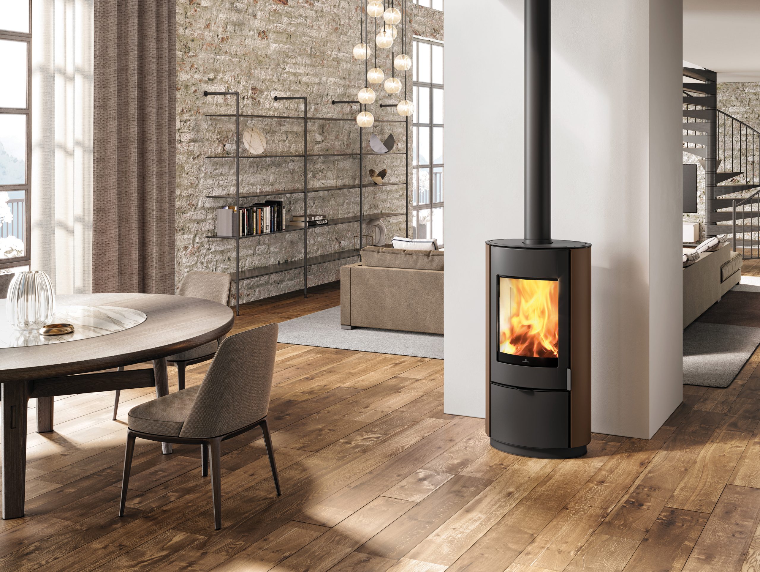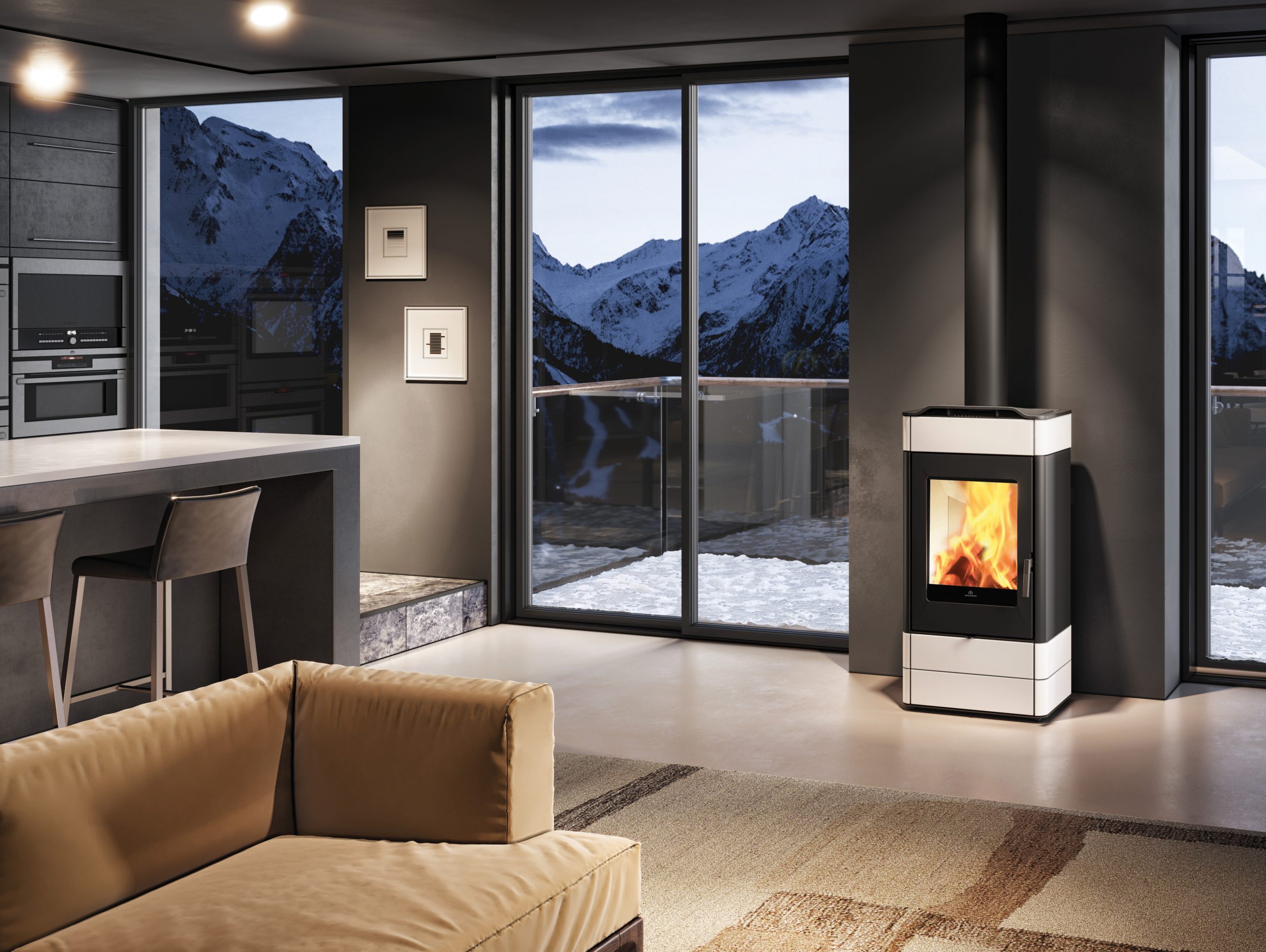 Krio è la stufa a legna dal design essenziale, elegante e compatto ma con ampia visione della fiamma può ospitare ciocchi di legna fino a 33 cm in orizzontale. Klass è la stufa a legna caratterizzata da un’elegante curvatura del profilo cilindrico, che le conferisce un accattivante design a “clessidra”, ideale sia per ambienti dinamici che per spazi più tradizionali. Dotata di anta con chiusura automatica soft-close, vano porta oggetti con pratica apertura push-pull, cassetto cenere.