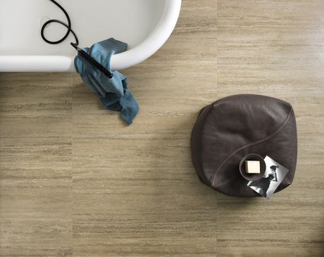 La serie è disponibile nei colori statuario white, safari amande, travertino classico e pietra gray, nelle finiture levigata (lucida brillante) e satinata (opaca) (foto Lea Ceramiche)