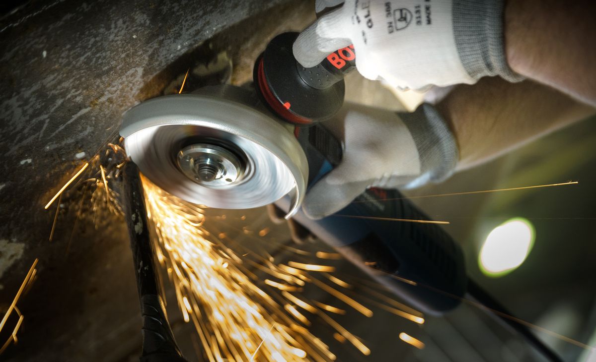La smerigliatrice angolare a batteria Bosch. Data l’insolita forma dello scafo, lo yacht richiede un trattamento speciale e la massima precisione. Poiché all’epoca le barche venivano realizzate a mano, nemmeno oggi è possibile utilizzare elementi prefabbricati.