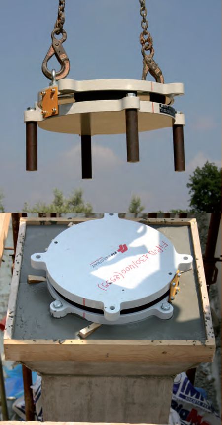 Sistema di protezione sismica. L’edificio ha sperimentato, tra i primi in Italia, il sistema di protezione sismica Friction pendulum sistem (Fps): un dispositivo d’isolamento che, interposto tra le strutture portanti in elevazione e il piano interrato, consente di ridurre sensibilmente gli eventuali effetti di un sisma sulla struttura sovrastante: il progetto ha abbinato il sistema Fps ad accorgimenti per i punti di passaggio dalla parte mobile a quella fissa.