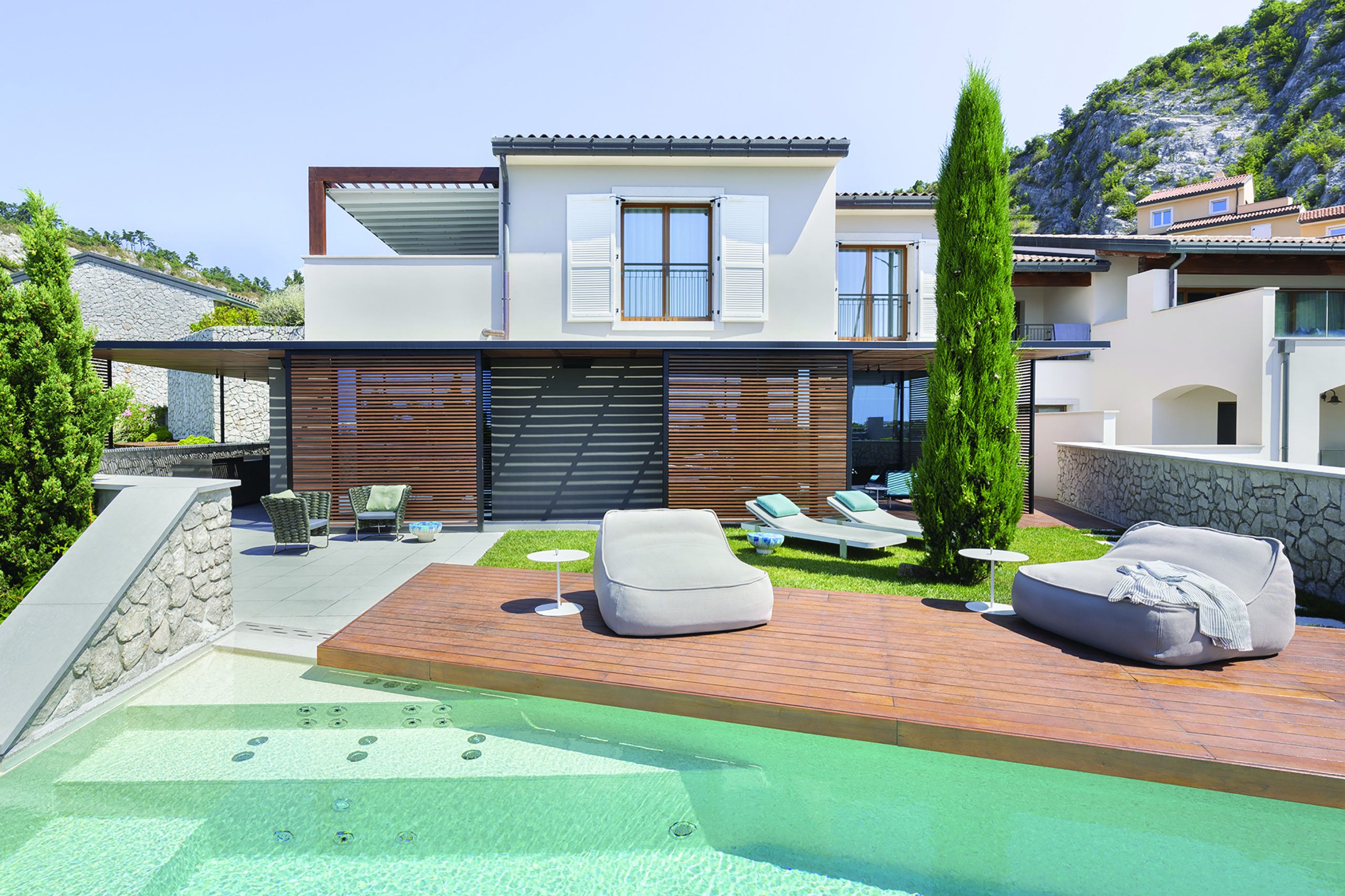 Portopiccolo è un un villaggio residenziale esclusivo situato tra Monfalcone e Trieste, costruito con materiali provenienti dall’ex cava calcarea di Sistiana con criteri rispettosi dell’ambiente. È qui che l’architetto Egidio Panzera ha ristrutturato una villa privata con un intervento che ne ha modificato completamente l’aspetto interno, ma ne ha stravolto anche la struttura, per aprire la zona giorno al mare e creare nuovi spazi conviviali.