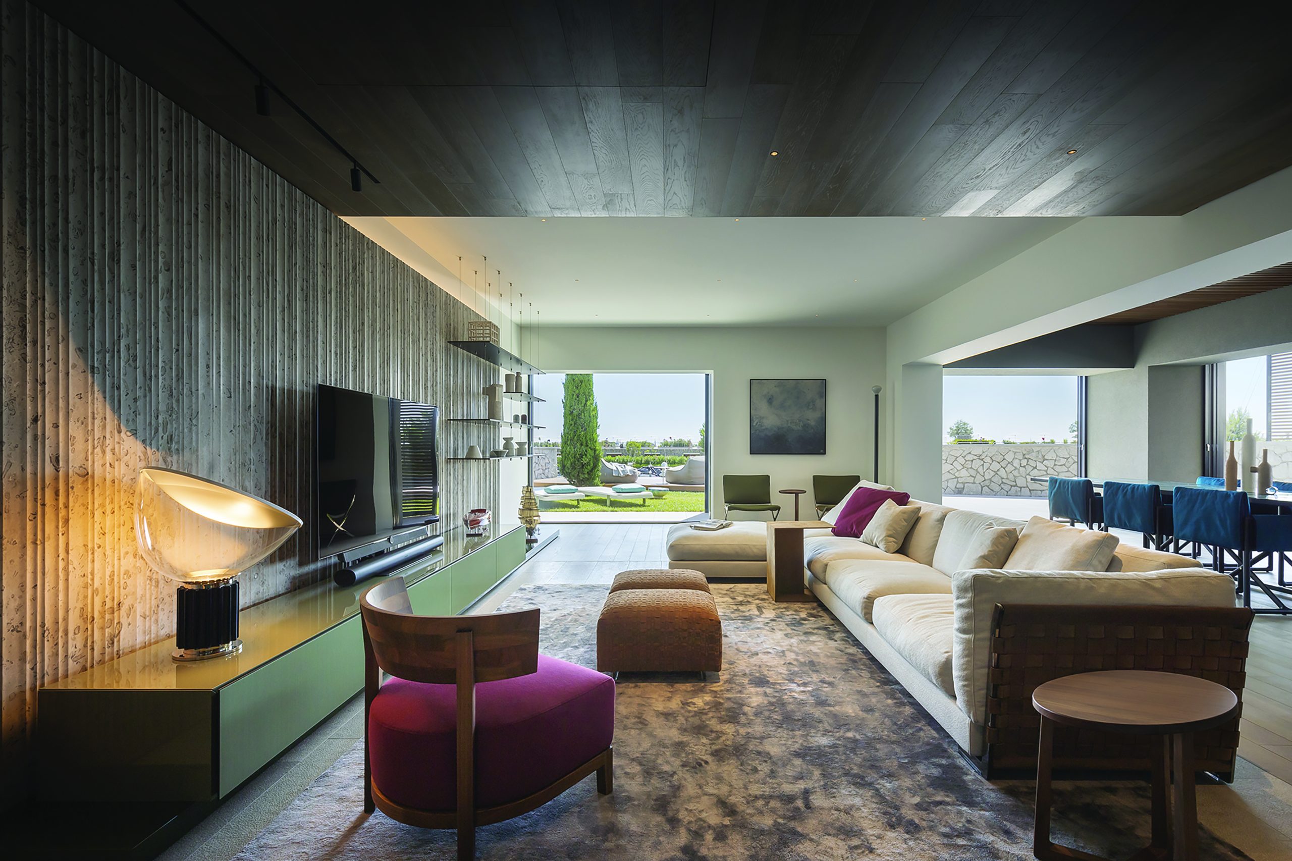 Per la villa di Portopiccolo c’è stato un grande lavoro di ascolto del cliente e dell’ambiente circostante, che si è tradotto in un dialogo tra dentro e fuori attraverso materiali e colori che ricordano le coste carsiche e il mare di Trieste»