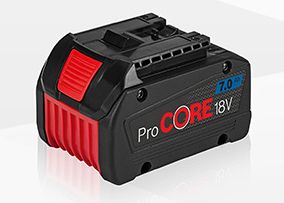 Bosch Professional con la batteria ad alte prestazioni ProCore18V 7,0 Ah dal design ottimizzato delle celle e la riduzione della resistenza interna, garantisce il 90% di potenza in più rispetto alle precedenti batterie da 18 Volt e 6,0 Ah.