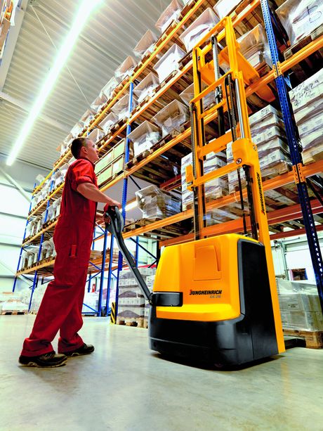 Ejc 214/216 è un elevatore particolarmente potente, ma che, nel contempo, consente di risparmiare e rispettare l’ambiente. Il carrello, dalla struttura robusta, è stato specificatamente studiato per l’impiego intenso in magazzino. Un motore di trazione da 1,6 kW dotato della tecnologia trifase Jungheinrich da 24 Volt, in combinazione con il sistema di controllo interamente sviluppato da Jungheinrich, fanno dell’Ejc 214/216 un carrello a un buon grado di efficienza con un consumo di energia relativamente modesto.