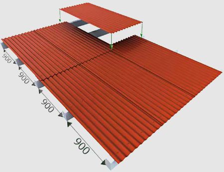 Posa in opera. Le lastre vanno posate partendo dalla gronda al colmo, sovrapponendo una o due onde per almeno 200 mm di testata (aumentando per pendenze inferiori al 10% a 250 mm).