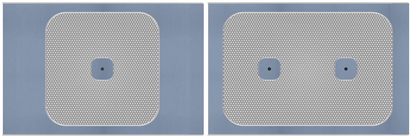 Il pannello è disponibile in versione da uno o due punti di alimentazione e le dimensioni, in entrambi i casi, sono pensate in modo tale da inserirsi negli standard di montaggio dei classici pannelli in cartongesso. Al centro del pannello è collocato un piccolo indicatore luminoso che corrisponde al punto di alimentazione sul quale posizionare ed alimentare o ricaricare lampade e altri accessori wireless, come smartphone di ultima generazione.