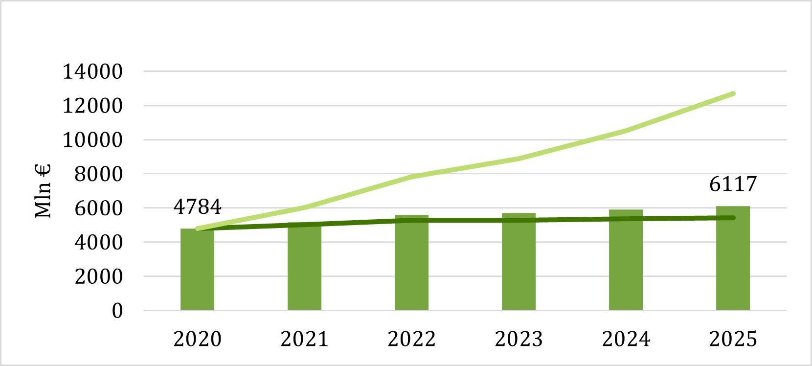 Gli scenari al 2025: dal 2021 trend di nuovo in crescita per quasi tutte le tecnologie
