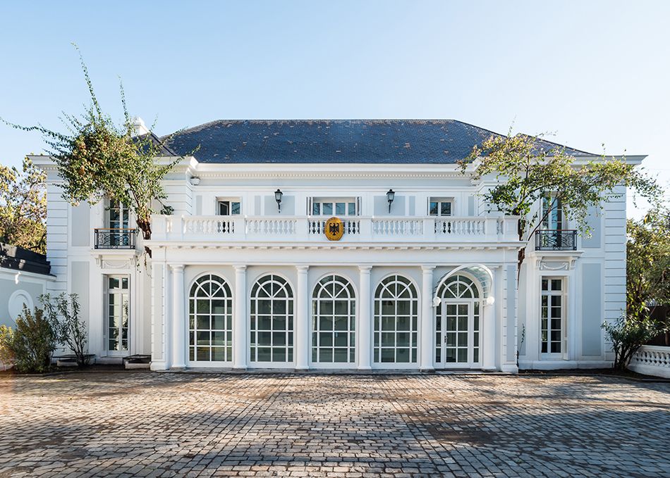 Nello storico edificio neoclassico, sede dell’ambasciata tedesca del Cile, è stato realizzato un importante progetto di ristrutturazione che ha previsto interventi sia a livello antisismico, sia di risparmio energetico, nel rispetto delle vigenti norme di tutela degli edifici con vincolo storico architettonico. A seguito della procedura di assegnazione, il progetto è stato aggiudicato a un team di architetti di origine sia tedesca che cilena: la FAR Frohn & Rojas Planung GmbH, i cui responsabili, infatti, – Marc Frohn e Mario Rojas – vivono rispettivamente, l’uno a Berlino e l’altro a Santiago del Cile.