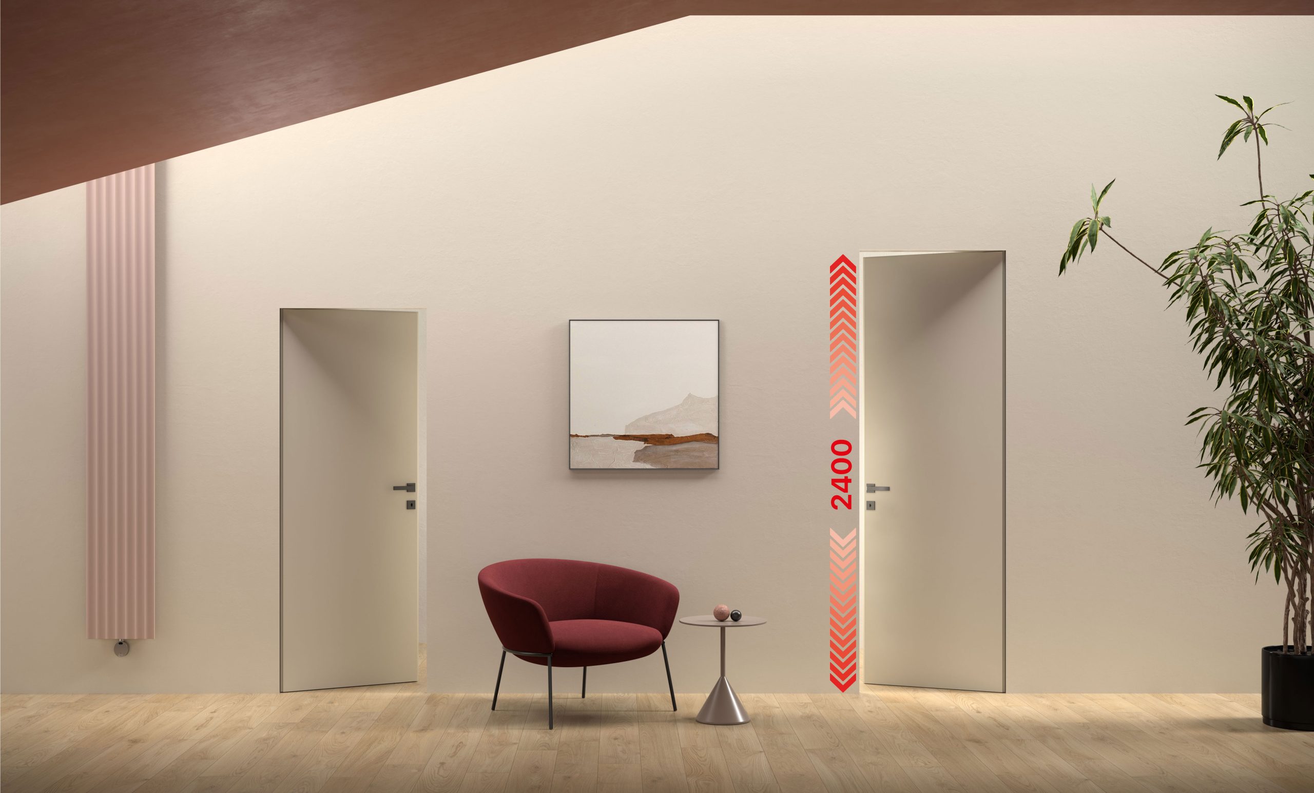 Il modello xREVERx XL, grazie al doppio scasso per serratura e riscontro magnetico, consente di scegliere liberamente il verso di apertura, garantendo un’eccezionale adattabilità anche con un’altezza di 2400 mm, un’esclusiva sul mercato per questa dimensione.