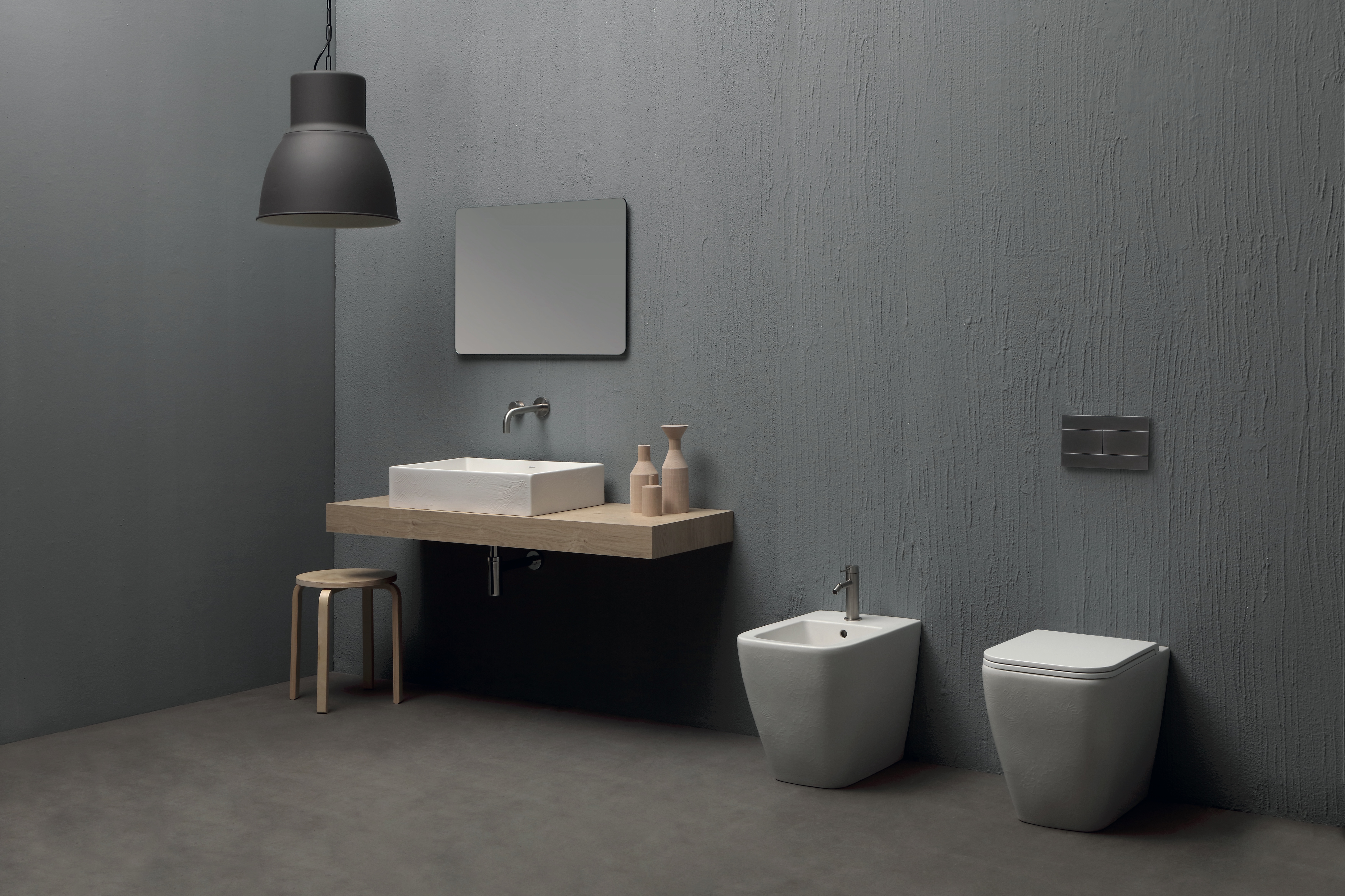 Quadra nella texture Macramè è una collezione legata a un ricordo, a un sogno quasi nostalgico, tradotto in una serie di disegni con l’impronta del “fatti a mano” immaginati per uno spazio architettonico senza tempo dove tutte le forme possono coesistere. Sanitari e lavabo sono coordinati.