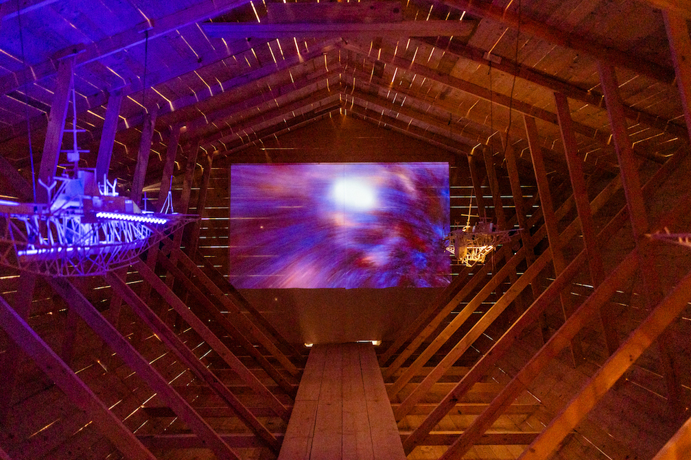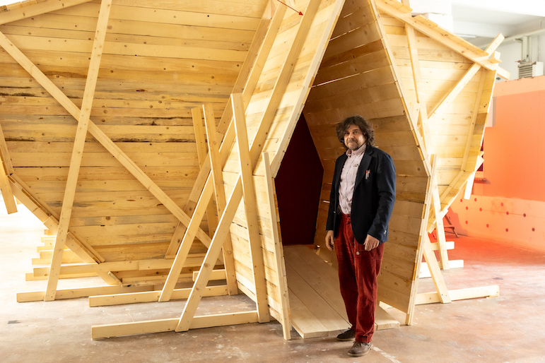 L’installazione stessa incarna questo approccio. Realizzata con materiali tipici dell’edilizia — assi da ponte, morali e fodere — costruisce uno spazio immersivo capace di coinvolgere ed emozionare. La struttura, completamente smontabile e riutilizzabile, diventa anche un esempio concreto di sostenibilità, dove materia e processo dialogano in modo continuo.