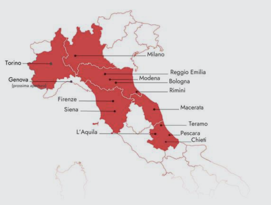 Sono così 49 i punti vendita Eternedile che, distribuiti su 15 province in Emilia Romagna, Lombardia, Piemonte, Toscana, Marche e Abruzzo, assicurano una presenza capillare sul territorio raggiungendo una superficie commerciale di vendita che supera i 270mila metri quadrati, suddivisi tra superficie scoperta per i materiali pesanti e superficie coperta per tutti i prodotti che richiedono un adeguato stoccaggio al chiuso.