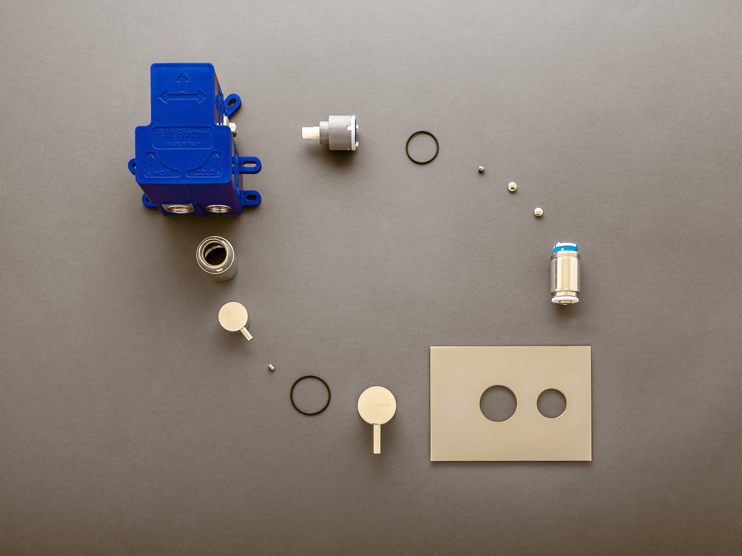 Il cuore dell’iniziativa è l’arte del fotografo Matteo Vecchi, che con maestria ha trasformato i rubinetti Frattini in opere d’arte uniche. Attraverso la meticolosa destrutturazione di ogni pezzo ha reso ogni rubinetto un mosaico d’ingegneria e design.