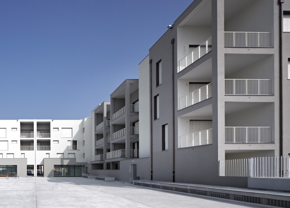 Spazi verdi di pertinenza. L’andamento irregolare dei due fabbricati residenziali genera spazi aperti privati di pertinenza (giardini e orti ai piani terra, logge e terrazzi ai piani superiori) e spazi aperti comuni in quota (terrazze di copertura praticabili). Queste soluzioni morfologiche e tipologiche si propongono di accogliere i nuovi bisogni e stili di vita contemporanei.