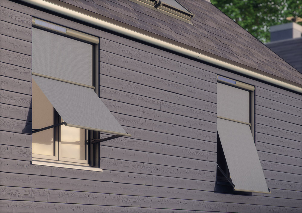 Frutto dell’esperienza Fakro, Vmb si distingue per uno speciale braccetto che, aprendosi, crea una protezione a tettuccio sopra la finestra. Questa soluzione permette l’uso di tessuti a trama rada mantenendo un’efficace ombreggiatura e la visibilità esterna.
