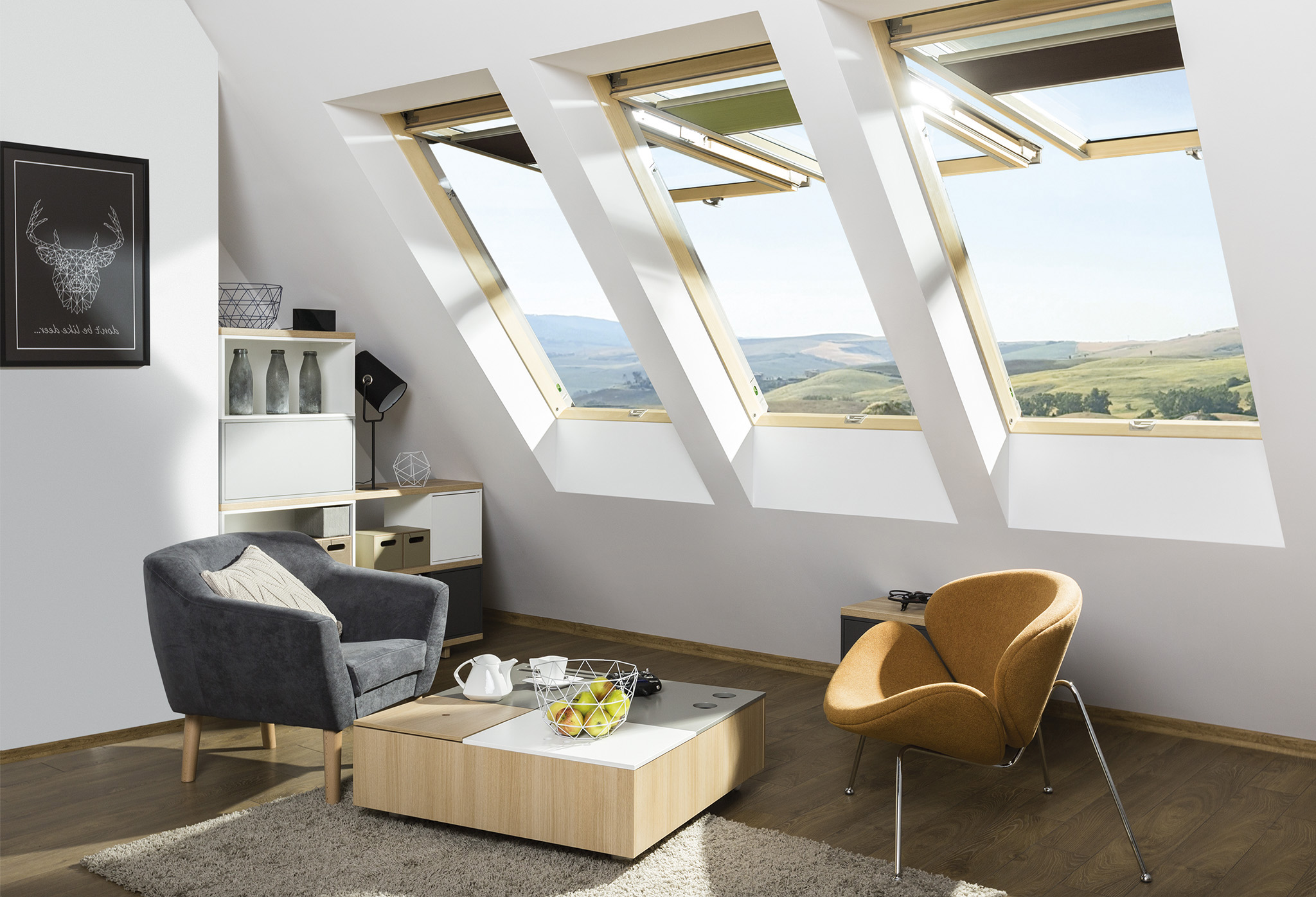 FPP-V-U5 preSelect MAX consente innanzitutto due diverse tipologie di apertura: oltre alla tradizionale apertura a bilico, è possibile attivare la funzione a vasistas, che permette di inclinare l’anta da 0° a 45° gradi. Proprio il sistema a vasistas rende possibile l’affaccio, consentendo una splendida visuale e trasformando gli spazi mansardati in zone di relax, dove l’orizzonte si fa protagonista.