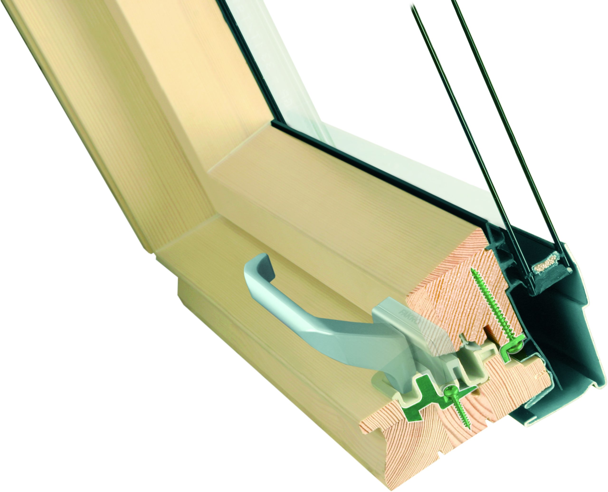 Grazie alla combinazione di questi elementi, il sistema topSafe assicura una chiusura solida, protegge il legno da danni e resiste ai tentativi di scasso. Inoltre, il vetro temperato di cui è dotata la finestra garantisce che tutte le finestre da tetto Fakro (sia la finestra che il vetro) siano classificate nella III classe di sicurezza o superiore, in conformità con la normativa En 13049.