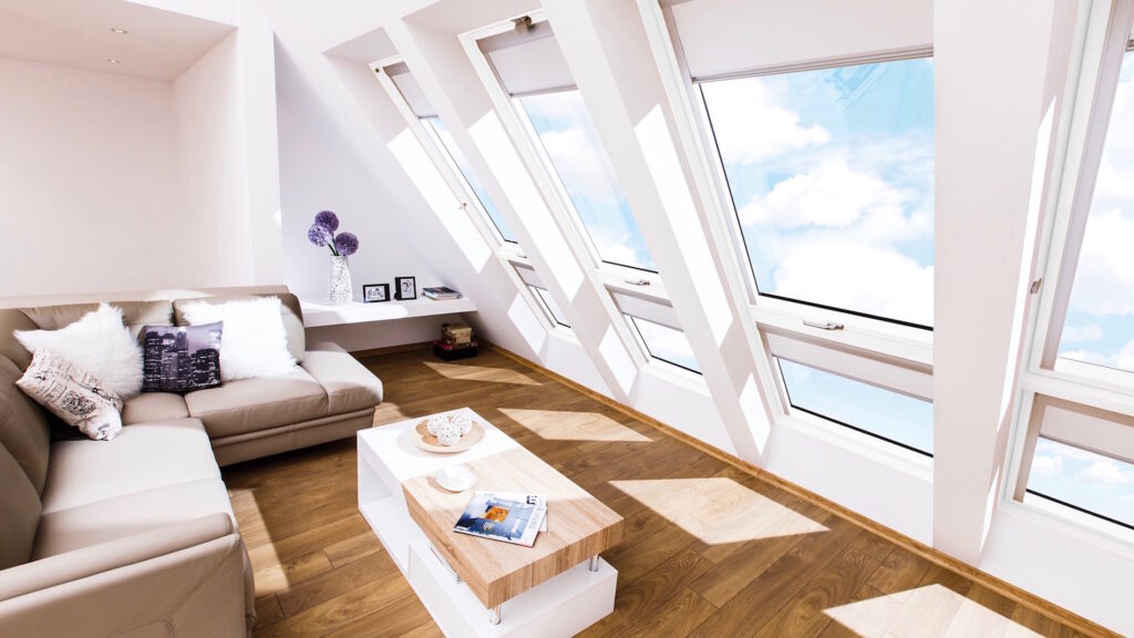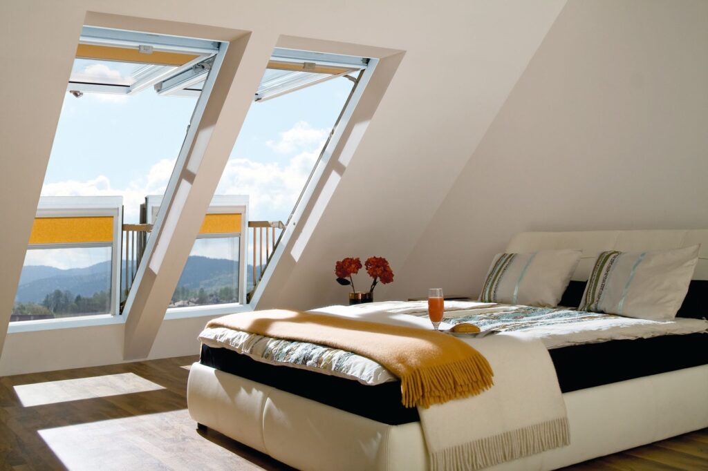 La finestra Balcone Galeria di Fakro crea un piccolo balcone accessibile per godere del panorama esterno della mansarda