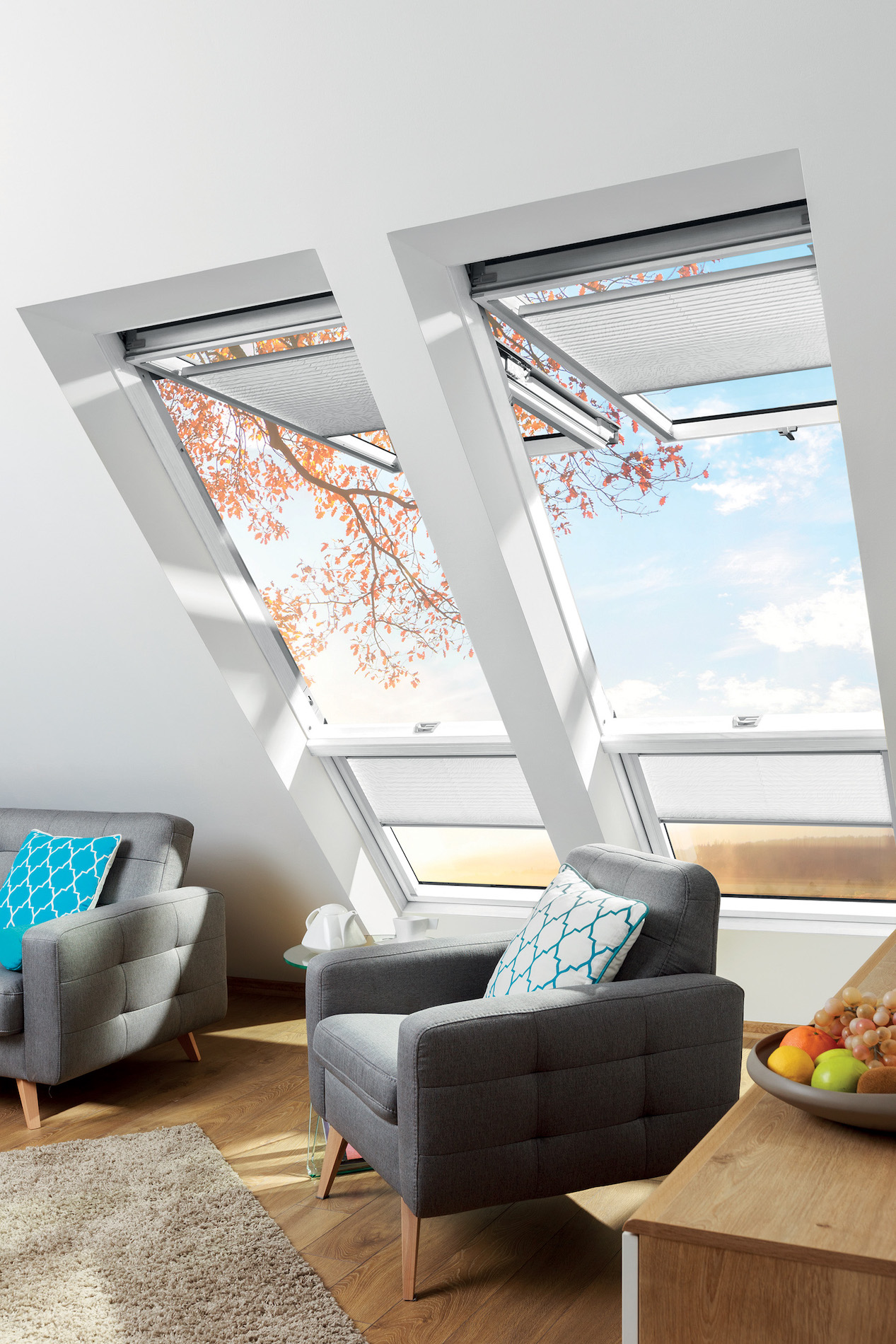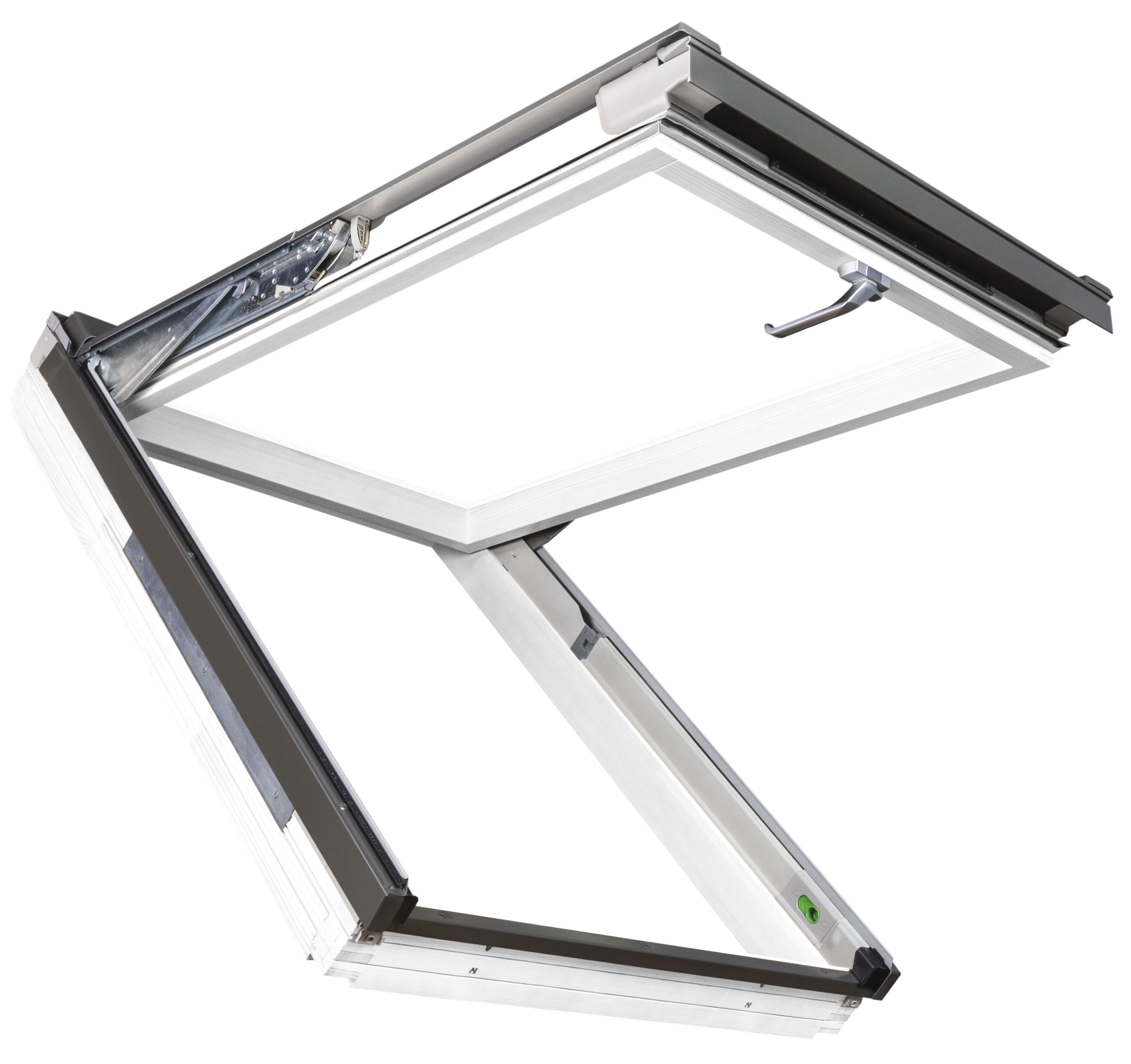 In entrambe le versioni di apertura, il nuovo sistema di cerniere brevettato garantisce assoluta stabilità al battente. Proprio grazie all’ampio angolo di apertura, che con preSelect Max raggiunge i 45 gradi, questo serramento può anche essere utilizzato, in caso di necessità, come accesso al tetto.