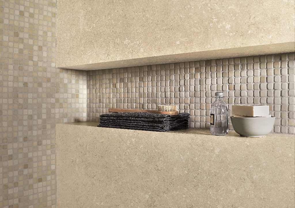 Nord propone anche una ricca varietà di mosaici dalla forte anima artigianale: i micromosaici e macromosaici per interni, caratterizzati da tessere a spacco dai bordi irregolari proposte nei due formati di tessere 5×5 e 1×1 cm; il mosaico Stone ispirato alla natura, che propone un pattern irregolare composto da ciottoli; il mosaico Solid Color, composto da tessere con bordi leggermente arrotondati; il macromosaico Out con tessere 5×5 cm dalla superficie fortemente strutturata e con caratteristiche antiscivolo, ideale per applicazioni in esterno e nei piatti doccia. A completamento della collezione, l’inserto Nord Precious Bronze, elemento ideale per impreziosire gli ambienti, e la linea di pezzi speciali come Battiscopa, Scalini, ideali per rifinire l’ambiente in ogni dettaglio.