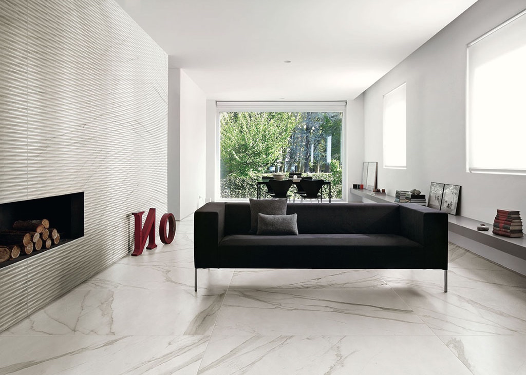 I rivestimenti della collezione sono proposti, in entrambi i formati, anche in due strutture 3D: Filo, un elegante cannettato tipico delle lavorazioni contemporanee del marmo e Fold, un’affascinante struttura a prismi di luce.