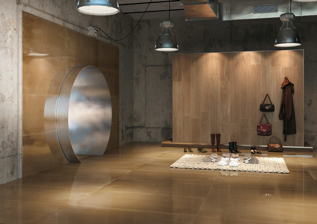 La nuova collezione è caratterizzata da un spessore di 10 mm ed è disponibile nei colori caldi ed eleganti Dove, Gold e Grey, nel maxi formato cm 75×150 RT e 60×60 RT, nelle finitura Matt e Brillante, mentre il formato cm. 30×60 RT, ideale per vestire ambienti più intimi con preziosi dettagli materici, è proposto unicamente nella finitura Matt.