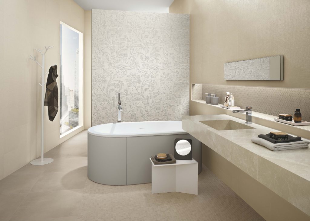 Nata dalla profonda vocazione alla ricerca stilistica di Fap Ceramiche, questa pregiata collezione dall’anima discreta è arricchita da inediti decori coordinati: Damasco – dove l’effetto tessuto affascina per la morbida tridimensionalità della superficie – e Kenzia, un poetico racconto creato da foglie che emergono materiche sulla superficie come appena dipinte. Per una maggiore esperienza visiva, Fap Ceramiche propone anche l’accattivante soluzione decorativa Righe Metal, che illumina la parete con la forza artistica di un gioiello fatto a mano. Proposto nei due colori Blu e Moka, l’effetto ossidato di questo decoro sorprende con inattesi riflessi metallici.