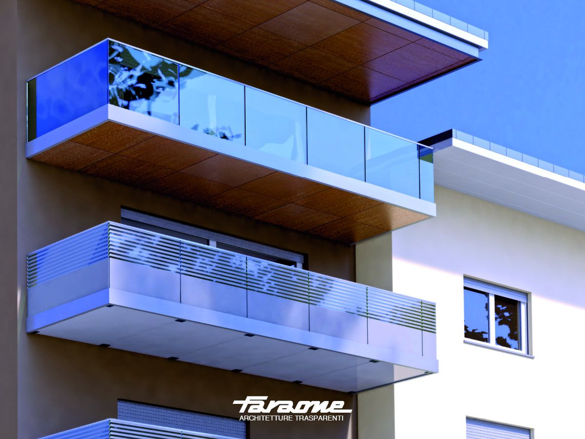 Ninfa balcone con profilo in alluminio. La nuova balaustra è strutturata con profilo in alluminio, zero ponti termici, soluzione antisismica e pavimenti a scelta in vetro, antiscivolo, marmo, ceramica, legno.