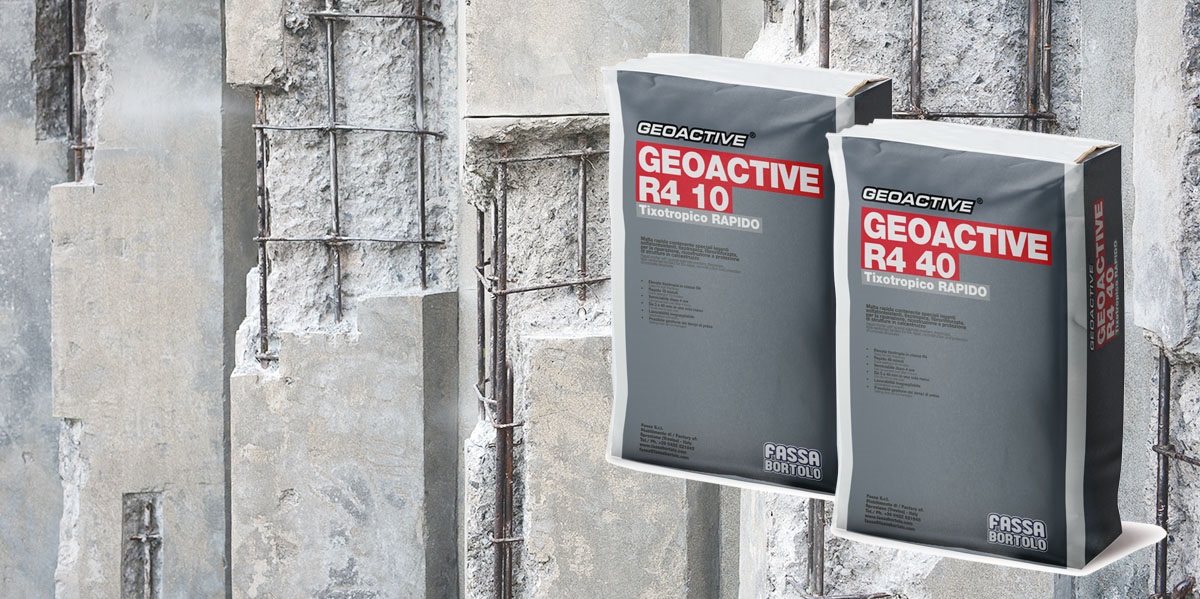 Le due nuove malte rapide Geoactive R4 10 e Geoactive R4 40 sono particolarmente indicate per interventi di ripristino strutturale del calcestruzzo ammalorato in cui sono necessarie una presa rapida ed elevate prestazioni meccaniche.