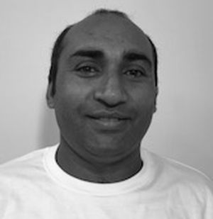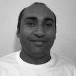 Mohammad Safique Hassan ha realizzato le resine a pavimento d’ingresso, zona di distribuzione e bagni, e la microresina a parete dell’appartamento. Posatore certificato Kerakoll dipendente di Mateca, ha lavorato in stretta collaborazione con l’ingegner Savoretti durante i lavori: sulla platea di cemento rifatta ex novo, è stato preparato il sottofondo su cui sono stati realizzati sei passaggi di resina, per un totale di 3/4 millimetri di posa. La particolarità è stata la copresenza di due colorazioni diverse nella stessa superficie: realizzata prima la zona interna, è stato inserito un profilo di ottone precedentemente lavorato e sagomato per poi posare la resina esterna. Nel bagno la microresina è stata posata a rivestimento delle pareti, anche nel vano doccia, in continuità con la superficie orizzontale del pavimento. Mohammad Safique Hassan, Posatore dipendente di Mateca.