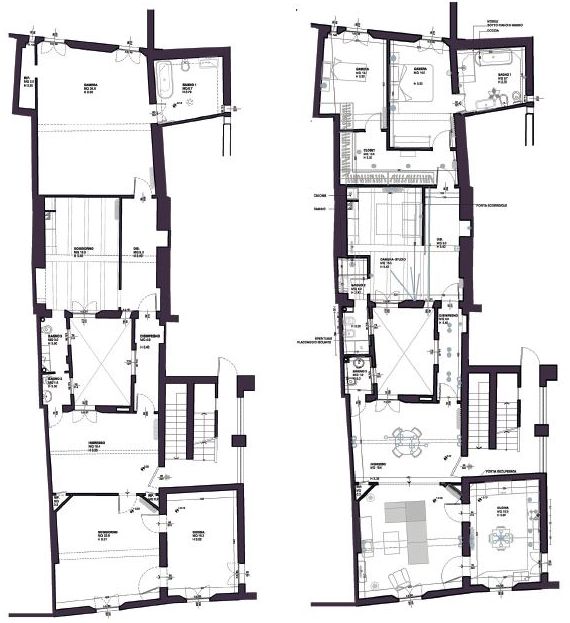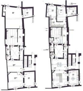 I locali, al piano nobile di un palazzo presuntamente settecentesco non tutelato dalla Sovrintendenza, erano disabitati da diversi anni, e l’ultimo inquilino vi aveva vissuto a lungo senza modificarne l’aspetto e senza apportare migliorie. L’appartamento appariva in stato di semi abbandono e annerito dalla fuliggine.