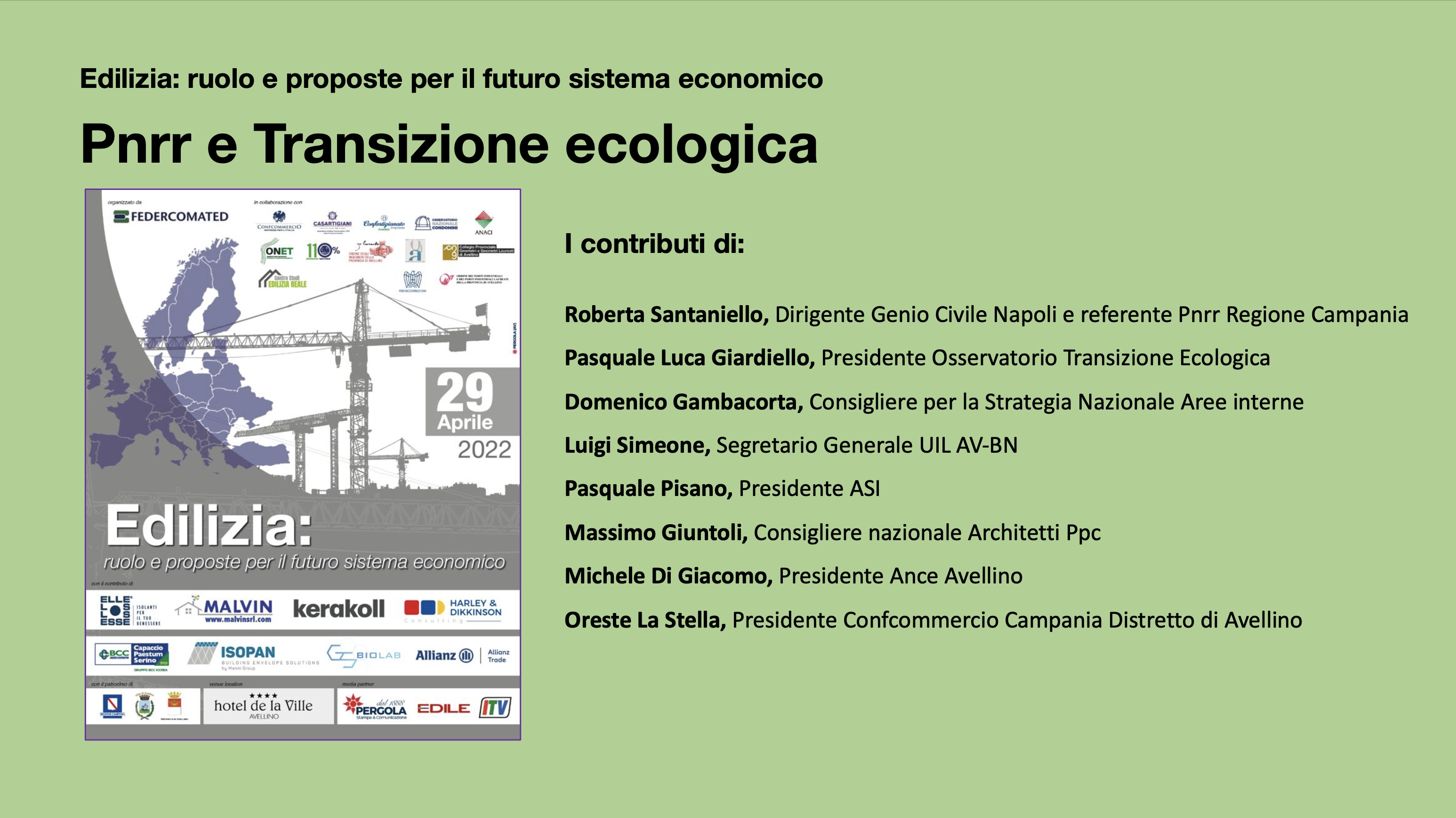 Pnrr e Transizione ecologica” è il tema della prima tavola rotonda pomeridiana che ha avuto luogo durante l’evento “Edilizia: ruolo e proposte per il futuro sistema economico”, organizzato da Federcomated Avellino, in collaborazione con Confcommercio  imprese per l’Italia, e svoltosi nella città campana lo scorso 29 aprile.