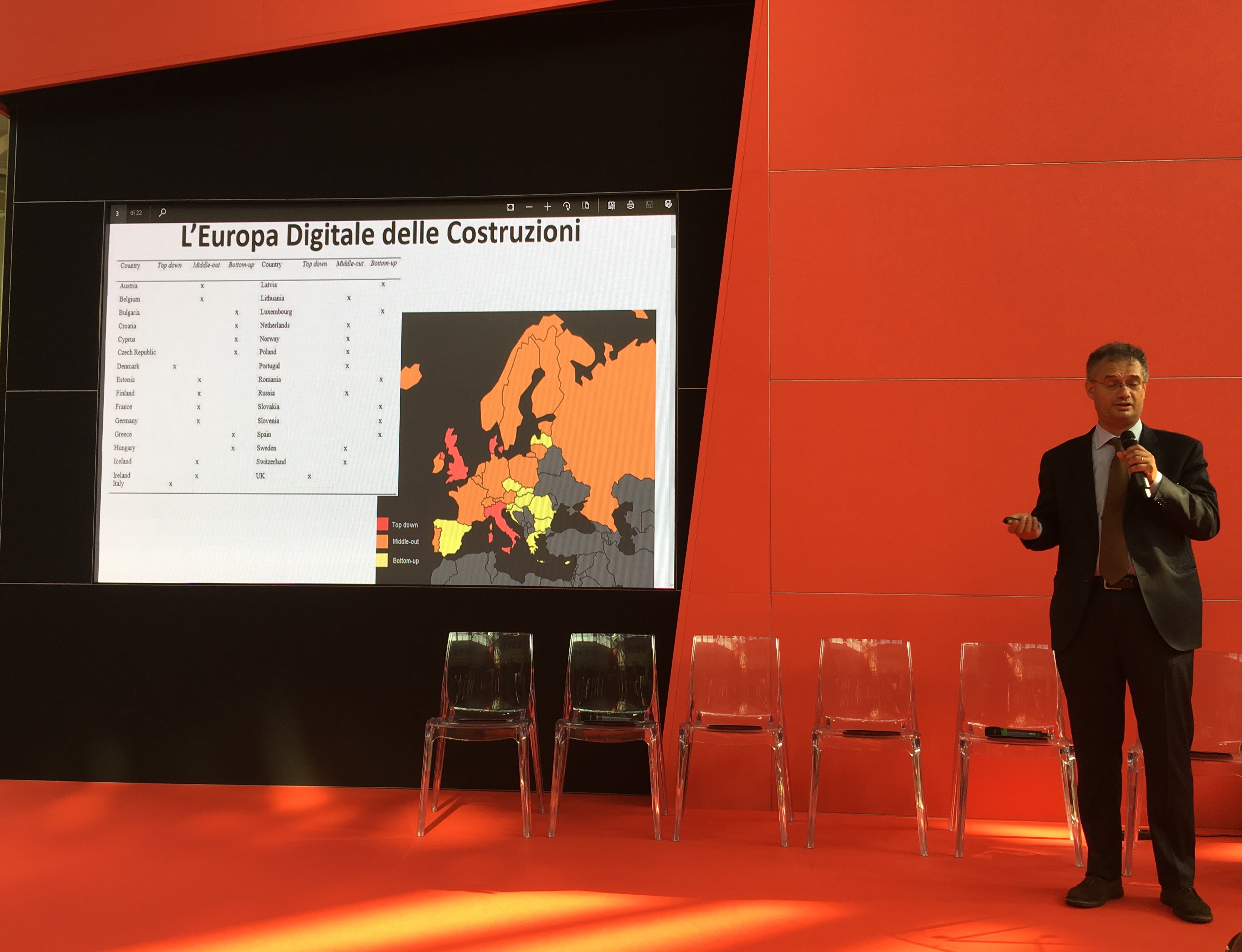 L’intervento che ha preceduto la tavola rotonda prevista è stato quello di Angelo Ciribini, docente all’Università di Brescia e membro, con Baratono, dell’Eu Bim Task Group, che ha illustrato la situazione della digitalizzazione delle costruzioni nei principali paesi europei.