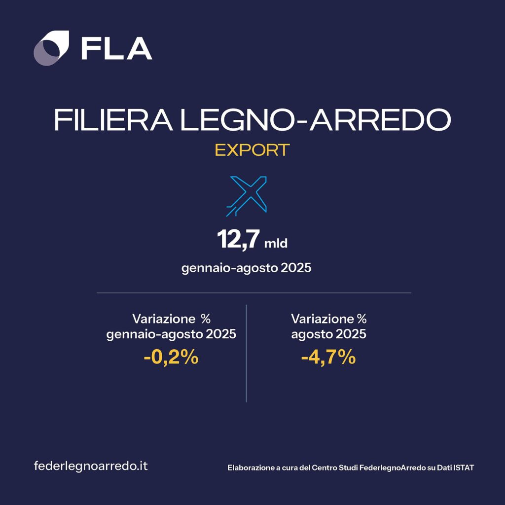 La filiera legno-arredo italiana nei primi otto mesi del 2025 evidenzia una sostanziale tenuta, con un export che si attesta a 12,7 miliardi di euro e una flessione minima dello 0,2% rispetto allo stesso periodo dell’anno precedente.
