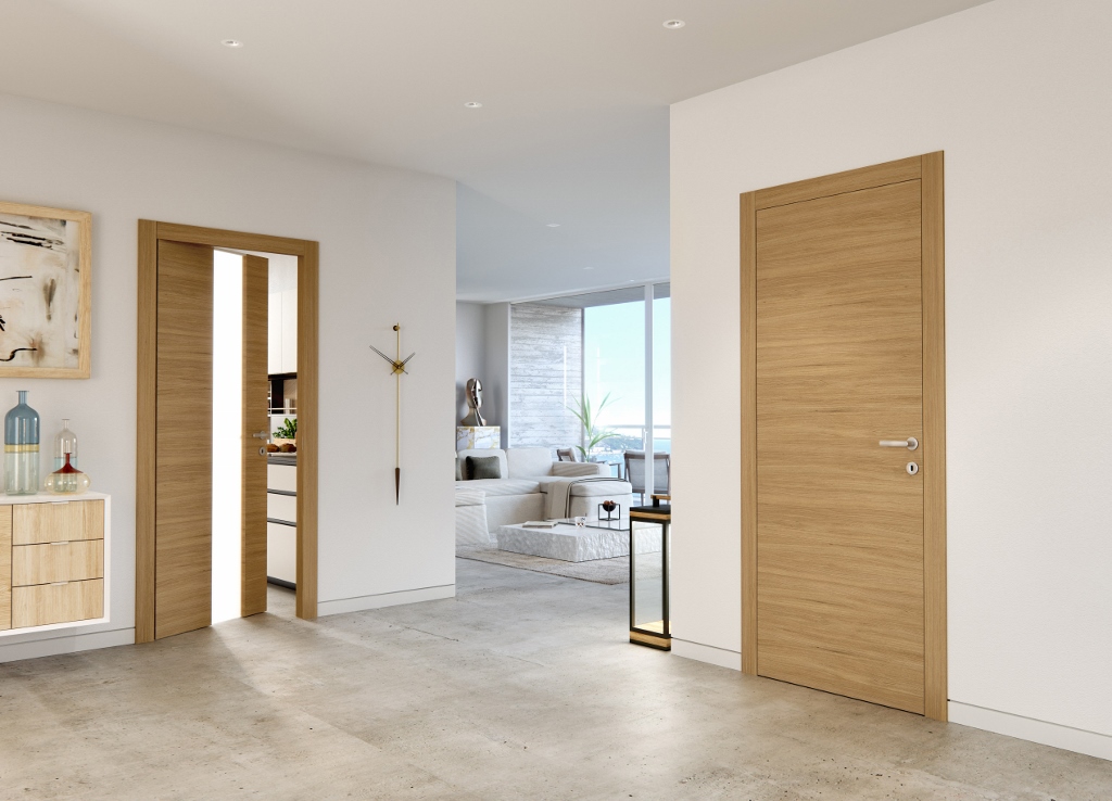 Ontario Noce e Rovere Gold sono disponibili per tutti i modelli delle linee Tratto, Logica e Liss di Replica abbinabili al telaio Genius Plus con cerniera Anuba e al telaio Flat con cerniera pivot – esclusiva FerreroLegno – o a scomparsa.