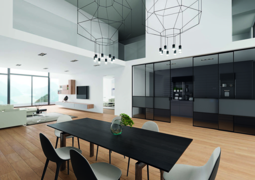 Delineo Industrial è il modello della linea Scenario, il sistema di pareti scorrevoli abbinabili anche a pannelli fissi, ideato da FerreroLegno e pensato per chi ama dare una connotazione industriale ai propri spazi. Scenario è un sistema completo di partizione che permette di separare o creare continuità visiva tra gli ambienti, modificando le geometrie della casa. Questo sistema di pareti scorrevoli è, infatti, uno strumento di progettazione dinamico e flessibile che permette di dividere e creare ambienti negli ambienti, senza appesantire gli spazi con interventi murali.