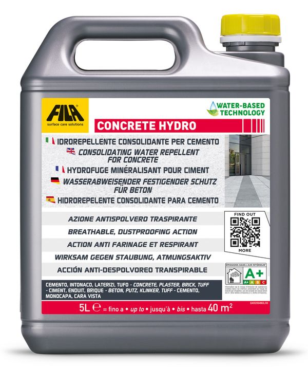 Fila Solutions ha ampliato la gamma di soluzioni dedicate alle superfici in cemento con Concrete Hydro, il nuovo prodotto a base acqua, idrorepellente, consolidante a effetto traspirante, pensato per la protezione contro i danni degli agenti atmosferici e per consolidare materiali cementizi come cemento, intonaco, pietra ricostruita, laterizio e tufo, contrastando l’effetto spolvero.