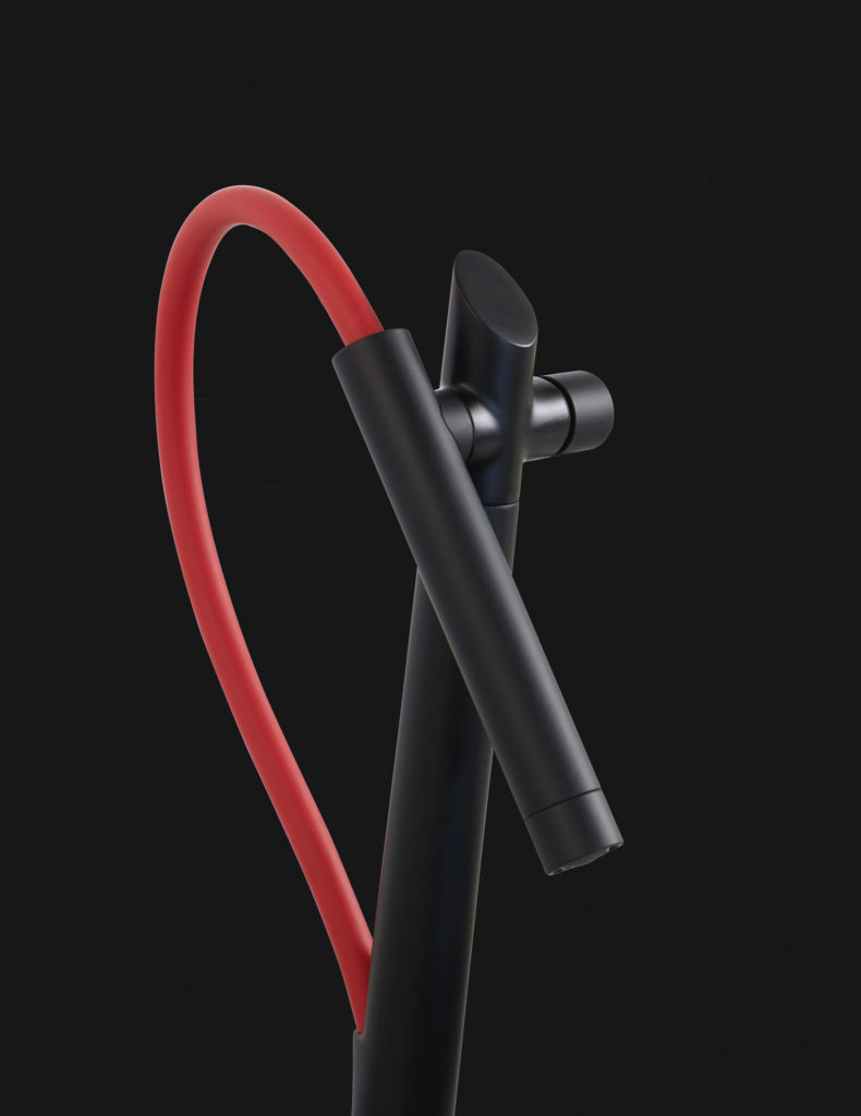 Cuore del miscelatore è il blocco di comando. Posizionato sulla parte alta della base, garantisce comodità di utilizzo in qualsiasi situazione quotidiana e conferisce leggerezza e pulizia formale. Al suo interno alloggia la manopola: semplificata all’estremo, in fase di installazione l’utente può decidere se configurarla con o senza il caratteristico pin in contrasto che permette di regolare il flusso e la temperatura dell’acqua. Grazie alla rotazione dell’intero blocco di comando sulla base è possibile modificare non solo la direzione del getto, ma anche l’orientamento della manopola, facilitando così la vista dei comandi da ogni angolazione e rendendo più confortevole l’uso quotidiano.