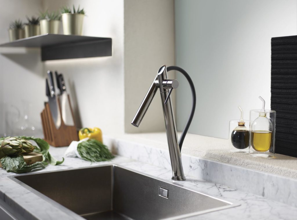 La forma di un telescopio riprodotta in un rubinetto da cucina. Galileo è una proposta innovativa non solo per via della forma, ma anche per l’ergonomia e le funzionalità. Disegnato da Bertone Design per Fima Carlo Frattini, Galileo è il nuovo rubinetto da cucina della divisione Fima Kitchen che si caratterizza per le linee aerodinamiche e sfidanti che richiamano il mondo automotive, tratto distintivo dello Studio.