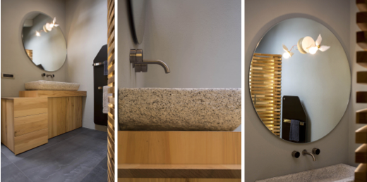 Con il suo progetto di ristrutturazione di un ambiente bagno di una villa dei primi anni ’90, Davide Vercelli ha sfruttato lo spazio preesistente e accorpato una porzione di sottotetto adiacente, aprendo un ampio passaggio per unirle. I grandi spazi a disposizione hanno premesso di realizzare uno spazio doccia d’impatto, caratterizzato da una parete rivestita sul lato esterno da una struttura in legno di cedro retroilluminata. Comune denominatore è l’uso di materiali e soluzioni tecnologiche innovative, quali la collezione Texture Collection di Fima Carlo Frattini – design Meneghello Paolelli Associati. Lo scenografico ambiente bagno della residenza è così valorizzato dal miscelatore a parete, miscelatore bidet, dal termostatico incasso, soffione doccia e saliscendi qui proposti con texture (V) Vertical nella speciale finitura nickel spazzolato e con le manopole intercambiabili nella versione con top Nero Opaco.