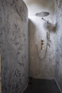 Con il suo progetto di ristrutturazione di un ambiente bagno di una villa dei primi anni ’90, Davide Vercelli ha sfruttato lo spazio preesistente e accorpato una porzione di sottotetto adiacente, aprendo un ampio passaggio per unirle. I grandi spazi a disposizione hanno premesso di realizzare uno spazio doccia d’impatto, caratterizzato da una parete rivestita sul lato esterno da una struttura in legno di cedro retroilluminata. Comune denominatore è l’uso di materiali e soluzioni tecnologiche innovative, quali la collezione Texture Collection di Fima Carlo Frattini – design Meneghello Paolelli Associati. Lo scenografico ambiente bagno della residenza è così valorizzato dal miscelatore a parete, miscelatore bidet, dal termostatico incasso, soffione doccia e saliscendi qui proposti con texture (V) Vertical nella speciale finitura nickel spazzolato e con le manopole intercambiabili nella versione con top Nero Opaco.