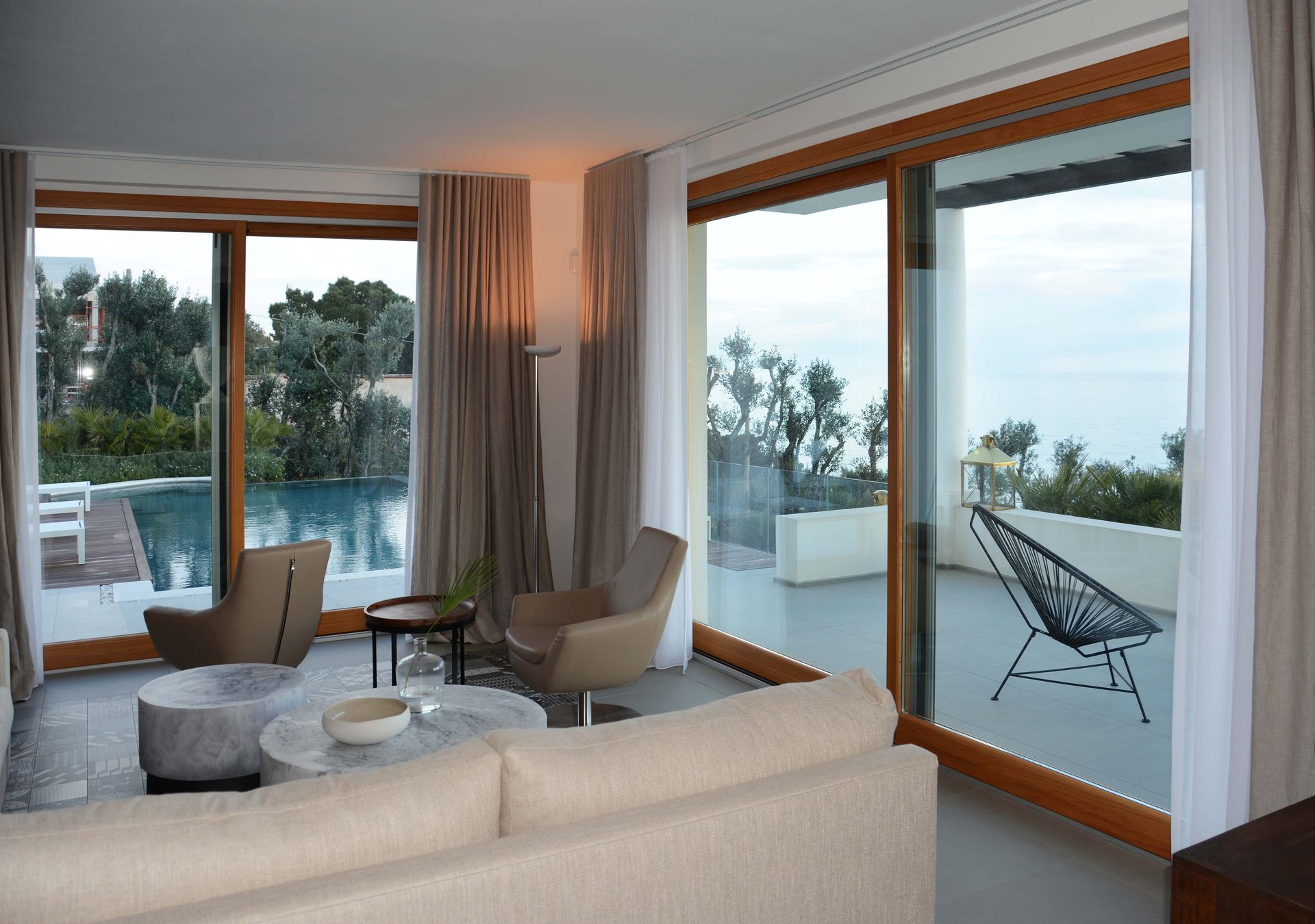 Alle naturali proprietà del legno unisce vetri a controllo solare di ultima generazione, in grado di schermare dal caldo in estate e proteggere dal freddo in inverno, contribuendo a ottimizzare la resistenza agli agenti atmosferici.