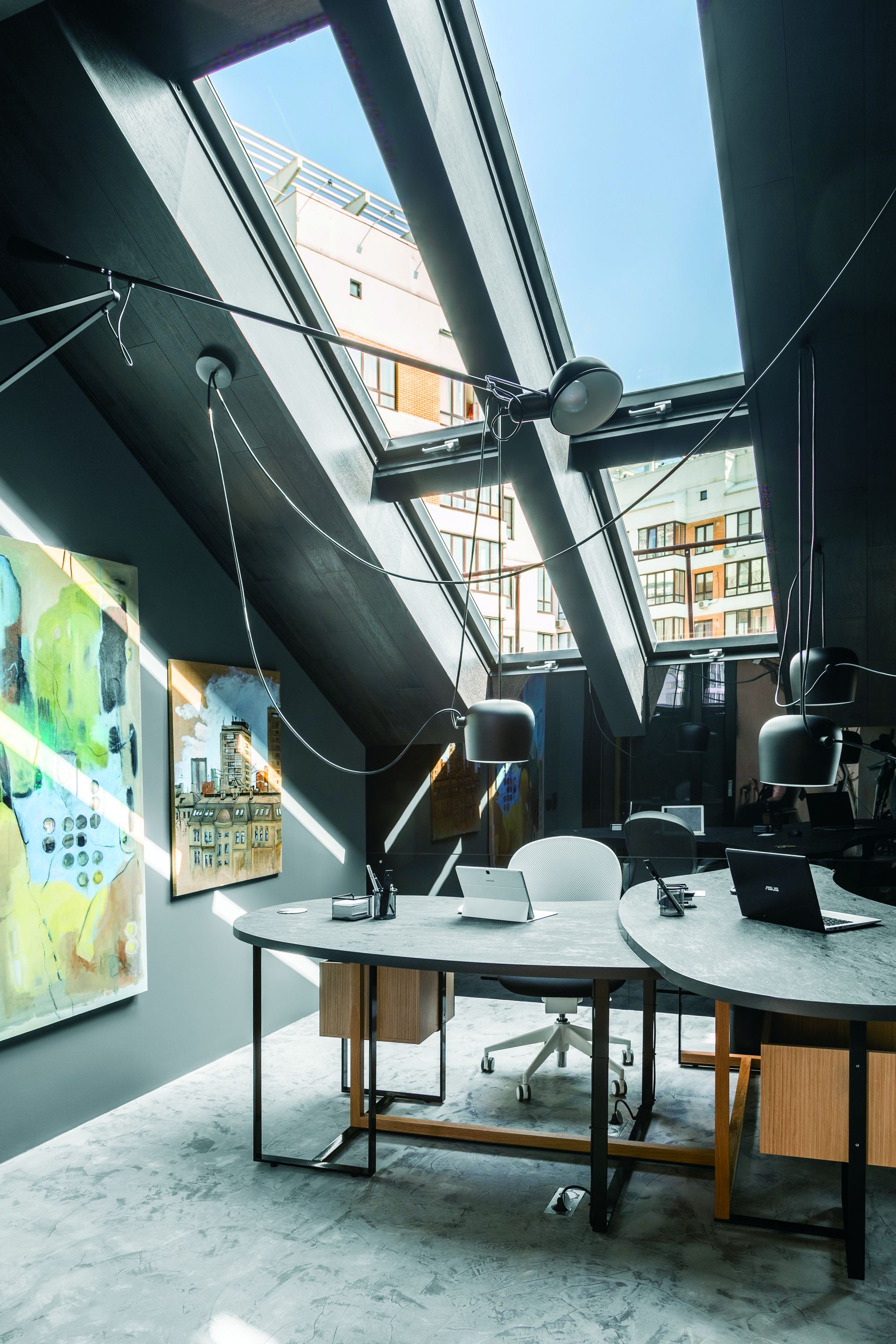 Per la realizzazione di un ufficio mansardato dal design contemporaneo, in Russia, installate le finestre per tetti Fakro che regalano all’ambiente una luminosità particolare, in grado di esaltare forme, materiali e colori. nel dettaglio otto finestre a bilico FTP-V, due serramenti FDY-V Duet proSky e una finestra da tetto PTP-V U3/GO.
